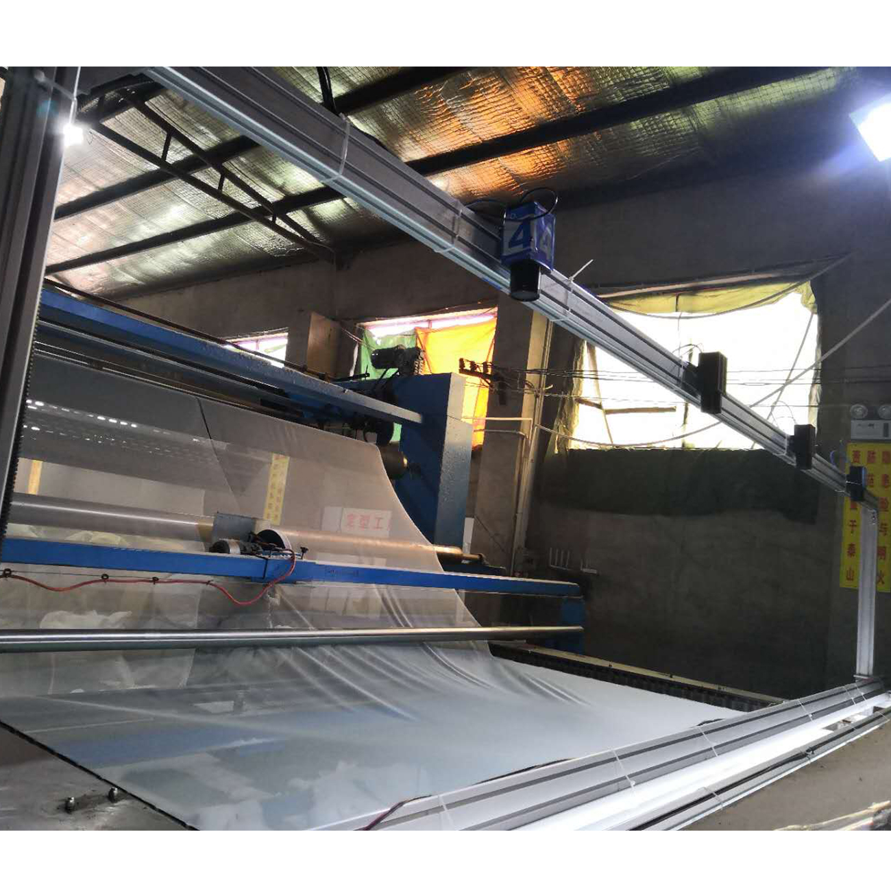 蚊帳布缺陷檢測系統(tǒng),采用機(jī)器視覺技術(shù)將視覺檢測設(shè)備安裝在定型機(jī)上方,實(shí)時(shí)在線檢測蚊帳布缺陷,達(dá)到質(zhì)量管控的目的。當(dāng)設(shè)備運(yùn)動(dòng)時(shí),高速相機(jī)實(shí)時(shí)采集蚊帳布圖像,將采集到的圖像傳輸至計(jì)算機(jī),計(jì)算機(jī)內(nèi)運(yùn)行的檢測軟件采用一定的圖像處理算法對采集到的圖像進(jìn)行分析,如果發(fā)現(xiàn)存在缺陷,則系統(tǒng)報(bào)警提示操作人員進(jìn)行相應(yīng)處理。