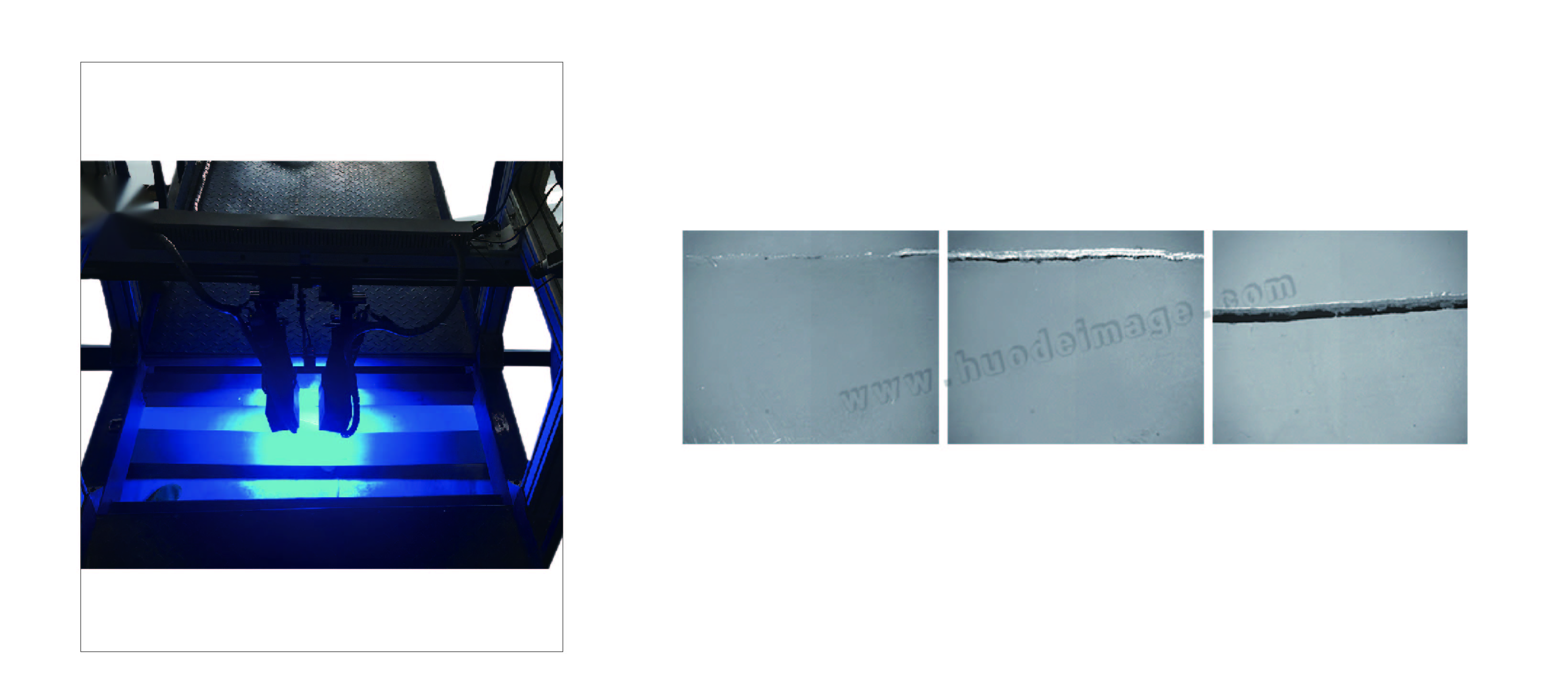 2、上下位移30mm。采用特制的相機(jī)、鏡頭及配套光源,能夠?qū)ι舷抡穹畲鬄?5mm的構(gòu)件(高度差30mm),精準(zhǔn)測量其裂紋擴(kuò)展長度。