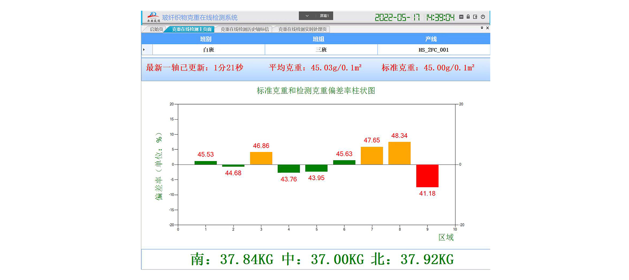 2、可以設(shè)定克重變化的上下限,超閾值則報警便于提醒車間人員實時調(diào)整。